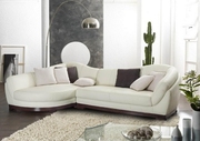 Угловой диван, выполнен в лучших традициях дизайнерских изысканий в области мебели. Каркас из прочных пород дерева, материал кожа, несколько подушек, дополняющих декор дивана.